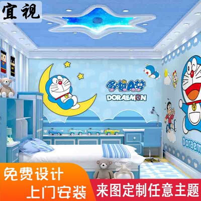 卡通哆啦a夢兒童房壁紙動漫叮噹貓臥室男孩女孩壁紙機器貓3d壁畫