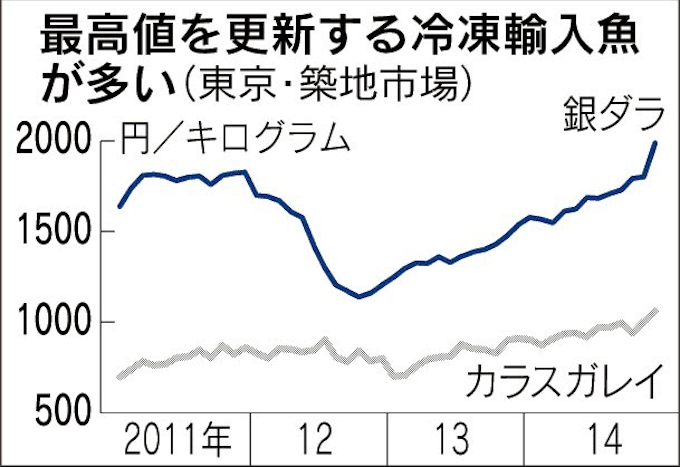 輸入の白身魚 軒並み上昇 日本経済新聞